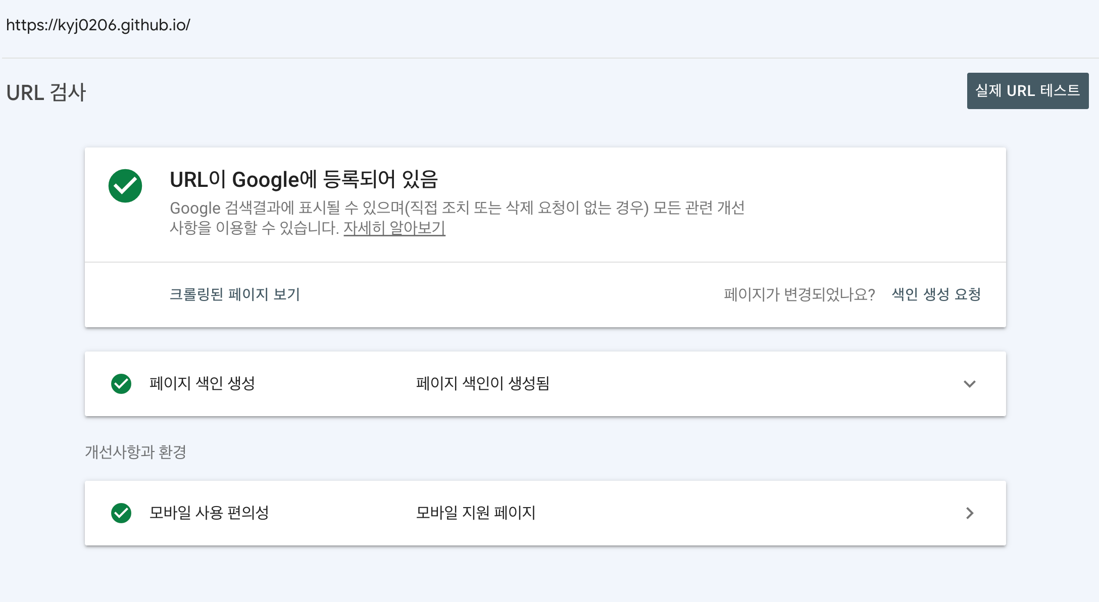 - URL 검사도구를 사용하여 페이지에 관한 세부적인 크롤링, 색인 생성, 게재 정보를 Google 색인에서 쉽게 확인할 수 있다.